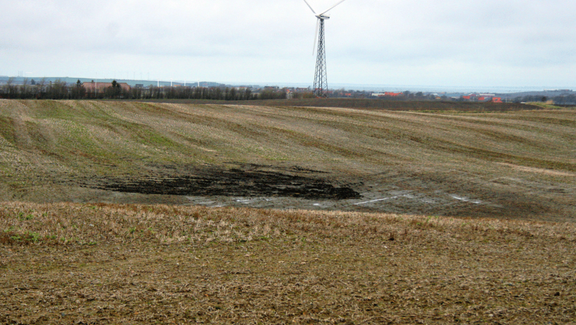 The dead ice landscape immediately behind the MSL at Lomborg - Bonnet - Heldum has irregularly distributed small depressions and low hills with a relief of 5-10 m. The distance between the depressions varies, but it is generally between 100 and 500 m. For example, in the south-western corner of the area there are five small water-filled depressions within a distance of only 500 m. The subsurface deposits are mostly clayey till, but particularly in the eastern part there are areas with meltwater sand and clay. Many of the small depressions are dry as a result of draining for agricultural purposes. Old maps show that many of the depressions used to be filled with water, which is also evident from peat deposits on their floors. The peat formed in small bogs where sphagnum could grow.